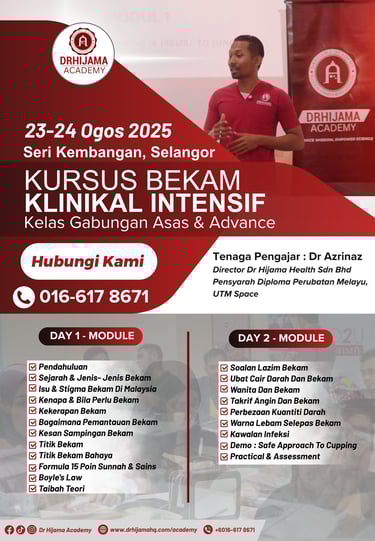 Pusat rawatan bekam berkonsepkan ‘MODERN SPA CLINICAL’ yang memberi jaminan keselesaan kepada pelanggan dan mengutamakan kebersihan dalam perawatan.